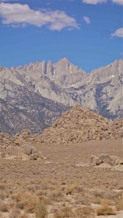 Distant view of 14,508’ Mt. Whitney from Alabama Hills