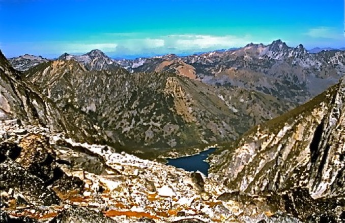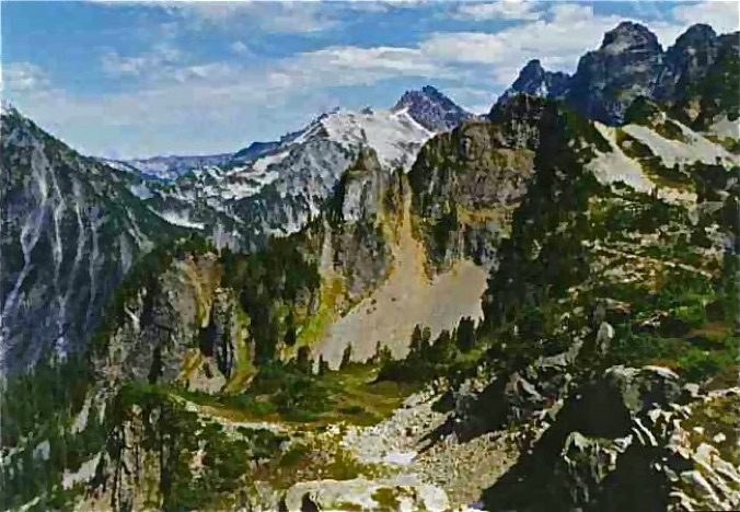 A post card looking image of the Alpine Lakes Wilderness taken from the
