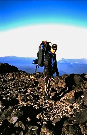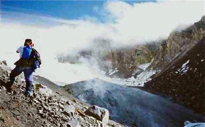 Standing near the cauldron of steaming toxic gases near the summit of
