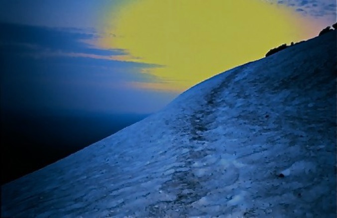 Looking down at the route up Mt. Hood, which started at timberline.